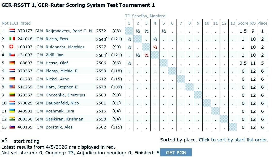 All official information and tournament standings can be found on the ICCF tournament page.
